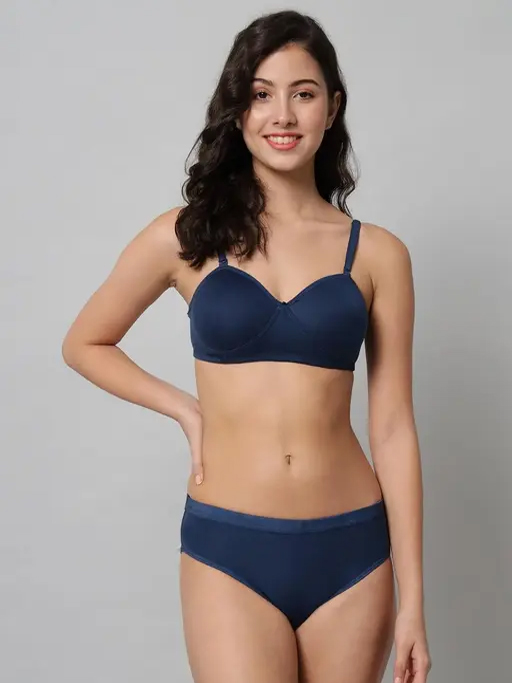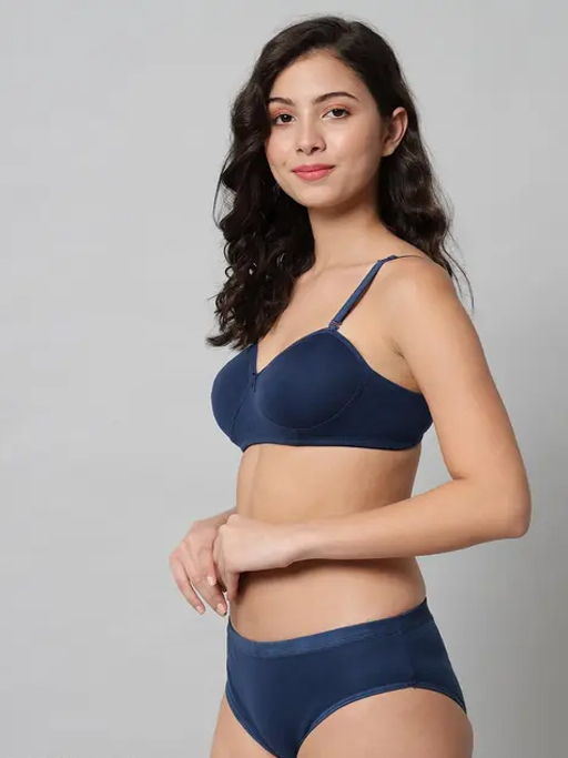 ENGLISH HALF PADDED SET is a seamless half-coverage padded bra that gives an excellent shape and has a nice design in various colors. The fabric and materials used in the bra are of very fine quality and are skin-friendly. the elastic strap and belt are made of nylon which gives extra comfort to the body. the bra is made of half padded which is very comfortable to use. half coverage padded bra gives a nice look to this bra. The closer type is an eye hook. The bra cup size is A cup. This is a half-coverage bra.